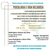 - O que seria uma espiritualidade imatura ou doentia? Vamos conversar sobre isso procurando juntos. Plataforma Google Meet, dias 24/08, das 9h às 12h.