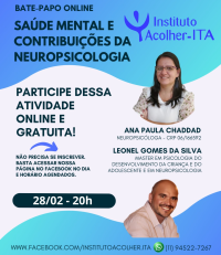 BATE-PAPO COM ANA PAULA CHADDAD E LEONEL GOMES DA SILVA. Tema: "SAÚDE MENTAL E CONTRIBUIÇÕES DA NEUROPSICOLOGIA” Plataforma Facebook, 28/02, às 20h.