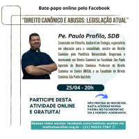 BATE-PAPO COM O Pe. PAULO PROFILO. Tema: “Direito Canônico e Abusos: Legislação Atual” Plataforma Facebook, 25/04, às 20h. Tivemos pico de 30 participantes online.