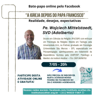 BATE-PAPO COM WOJCIECH MITTELSTAEDT (ADALBERTO) E IVAN RODRIGUES. Tema: A Igreja depois do Papa Francisco: realidade, desejos e expectativas Plataforma Facebook, 07/05, às 20h.