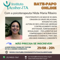 BATE-PAPO COM A PSICÓLOGA NILDA MARIA RIBEIRO Tema: Afetividade, sexualidade, agressividade Plataforma Youtube, 26/08, às 20h.